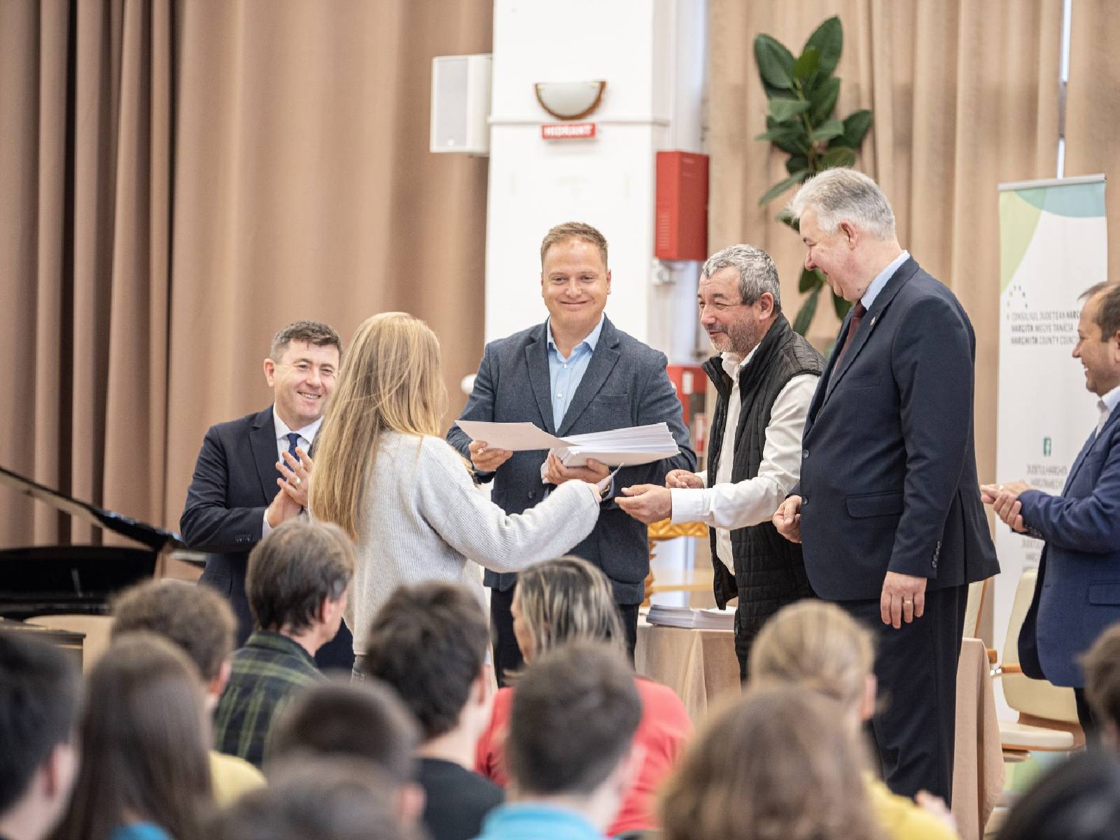 A résztvevőket Borboly Csaba alelnök köszöntötte, kiemelve az oktatás és a tudásalapú teljesítmény fontosságát. Mint mondta, ez az esemény nem csupán a díjakról szól, hanem arról is, hogy vannak fiatalok és pedagógusok, akik a jövőben gondolkodnak, akiknek vannak céljaik, képesek példát mutatni másoknak, és jelentős eredményeket érnek el.